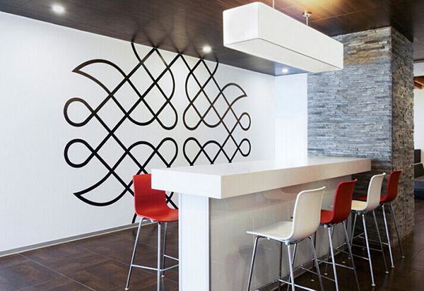 有這樣的一個(gè)公司,他們?cè)谵k公室裝修時(shí),辦公室設(shè)計(jì)師由于受到當(dāng)?shù)氐拿耖g文化的影響,從中得到靈感,他們?cè)O(shè)計(jì)的圖案具有很強(qiáng)的民族風(fēng)色彩,他們將其與辦公室裝修相結(jié)合,有機(jī)地將其與建筑設(shè)計(jì)相融合了,展示出來(lái)的則是一番獨(dú)特的視覺(jué)效果體驗(yàn),被放大的圖形與圖案和背景墻形成非常鮮明的對(duì)比,他們做了非常多的關(guān)于這方面的主題墻,這個(gè)公司以標(biāo)新立異的風(fēng)格作為思維導(dǎo)向,同時(shí)也把公司形象與品牌價(jià)值,通過(guò)色彩的添加,使現(xiàn)代化的空間與傳統(tǒng)文化實(shí)現(xiàn)無(wú)縫對(duì)接。