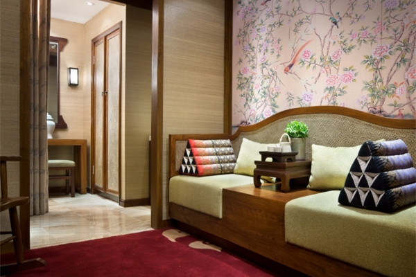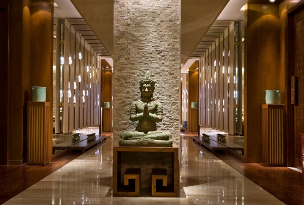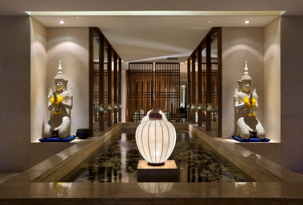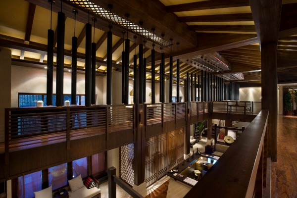從材質(zhì)到色彩再到燈光,可以看到的搭配都很和諧,拋去了泰國那種花花綠綠的感覺,沉淀下來的氣質(zhì)寧靜而清幽。這其中提煉到一股精髓,即“佛”,但沒有非常夸張化,再用燈光的明暗對比來突出氣氛,不會令人覺得多了一分,或少了一分。這個系列的設(shè)計,辦公室設(shè)計公司可以參考一下,特別是燈光的把握。