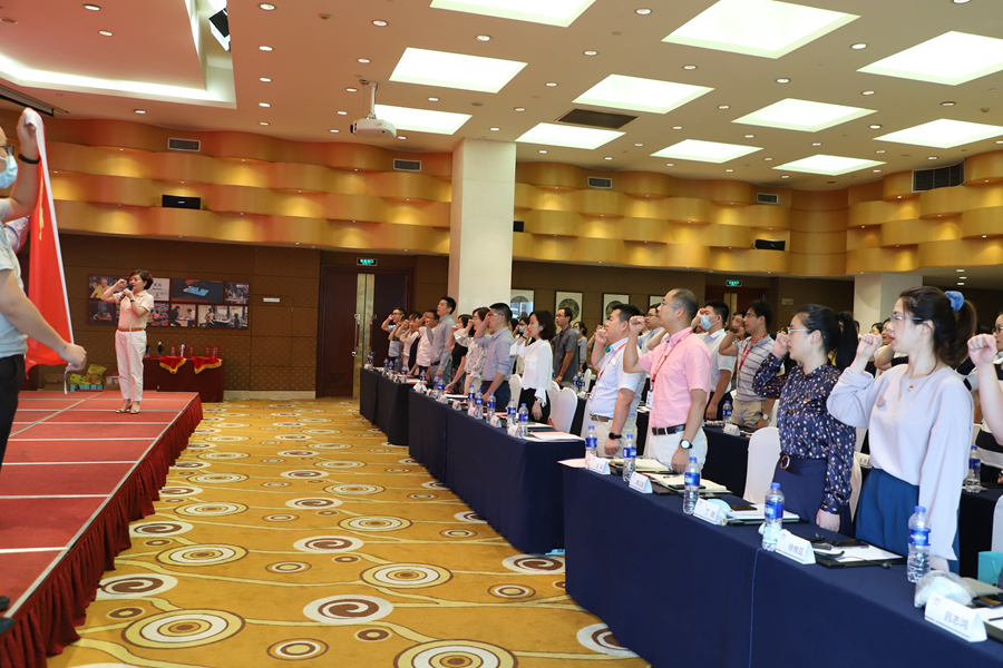 ? ? 黨委副書記陳瑾帶領與會黨員,面對黨旗,高舉右手,重溫入黨誓詞。
